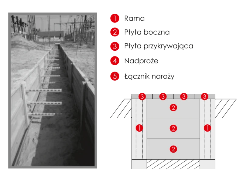 • Wykop pod kanał kablowy powinien być odpowiednio zagęszczony – zgodnie z projektem wykonawczym, natomiast ramy kanałowe wraz z płytami bocznymi, powinny być odpowiednio wypoziomowane i ustawione w pionie.